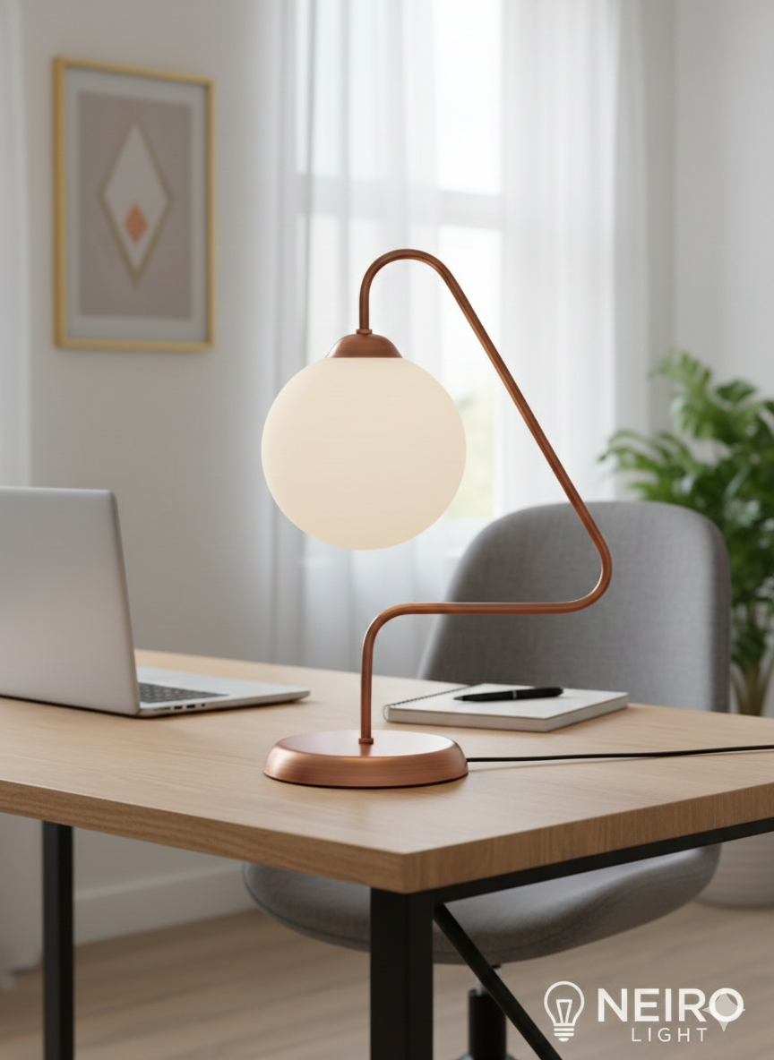 "Orb" Abajur: Mükemmel Denge ve Minimalist Zarafet – Fırçalanmış Bakırın Parıltısı