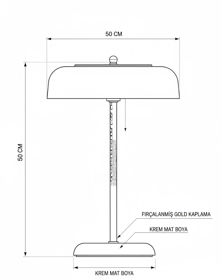 Yumuşak Işık: Geniş ve yayvan şapkası, gözü yormayan, homojen bir ışık dağılımı sağlar. Krem tonundaki mat yüzey, ışığı yansıtarak odanıza ferah ve aydınlık bir atmosfer katar.