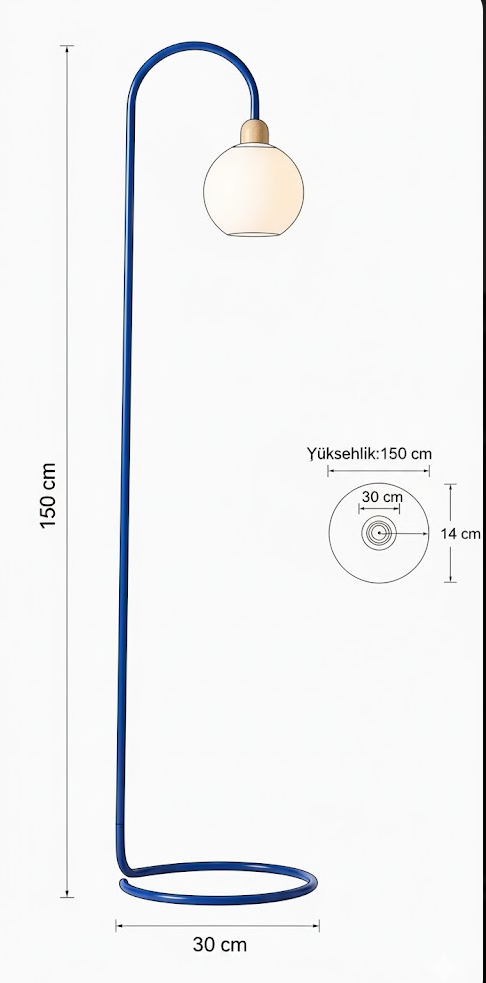 Zarif ve Akıcı Form: Tabanından yükselen tek parça kıvrımlı gövde ve üst kısımda zarifçe yerleştirilmiş küresel lamba başlığı ile sanat eseri niteliğinde bir tasarım sunar.