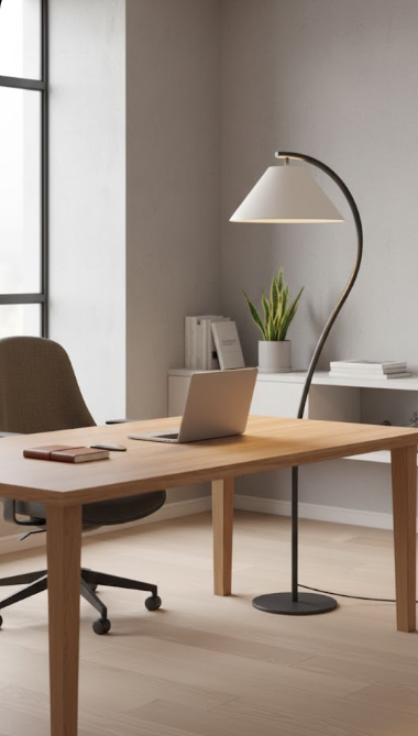 LINEA - Minimalist Konsol Lambader ile modern ve işlevsel aydınlatmanın mükemmel dengesini evinize taşıyın. Keskin hatları ve zarif kıvrımıyla LINEA, bulunduğu her ortamda sanatsal bir odak noktası oluşturur.