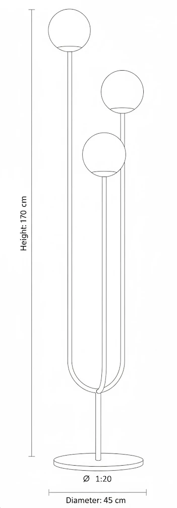 Her Mekana Uyumlu Boyutlar: 45 cm çapında tabanı ve 170 cm yüksekliğiyle Luna Trio, hem geniş salonlarda hem de daha mütevazı alanlarda etkileyici bir duruş sergiler. Köşeleri doldurur, boşluklara karakter katar.