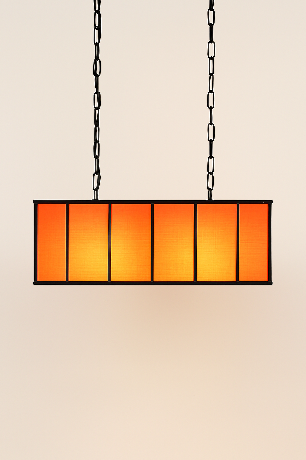 • Malzeme: Turuncu tekstil yüzey, siyah metal çerçeve, sıcak ışık difüzörü