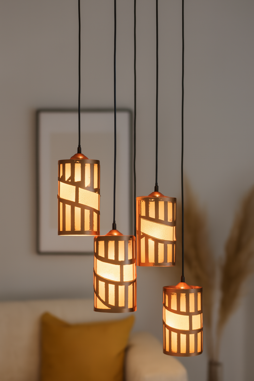 Amberis, dört ayrı sarkıtın geometrik zarafetiyle mekânınıza sıcaklık ve karakter katıyor.