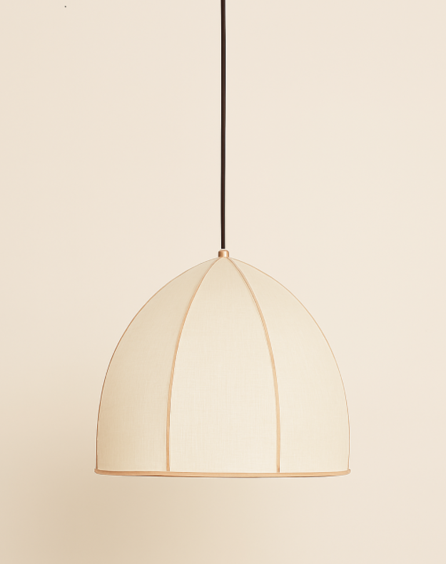 Liva, doğal kumaş dokusu ve kubbe formuyla mekânınıza sıcaklık ve denge katıyor. Dikey dikiş hatları, ışığın yumuşak yayılımını desteklerken, sade tasarımıyla hem modern hem zamansız bir atmosfer yaratıyor.
