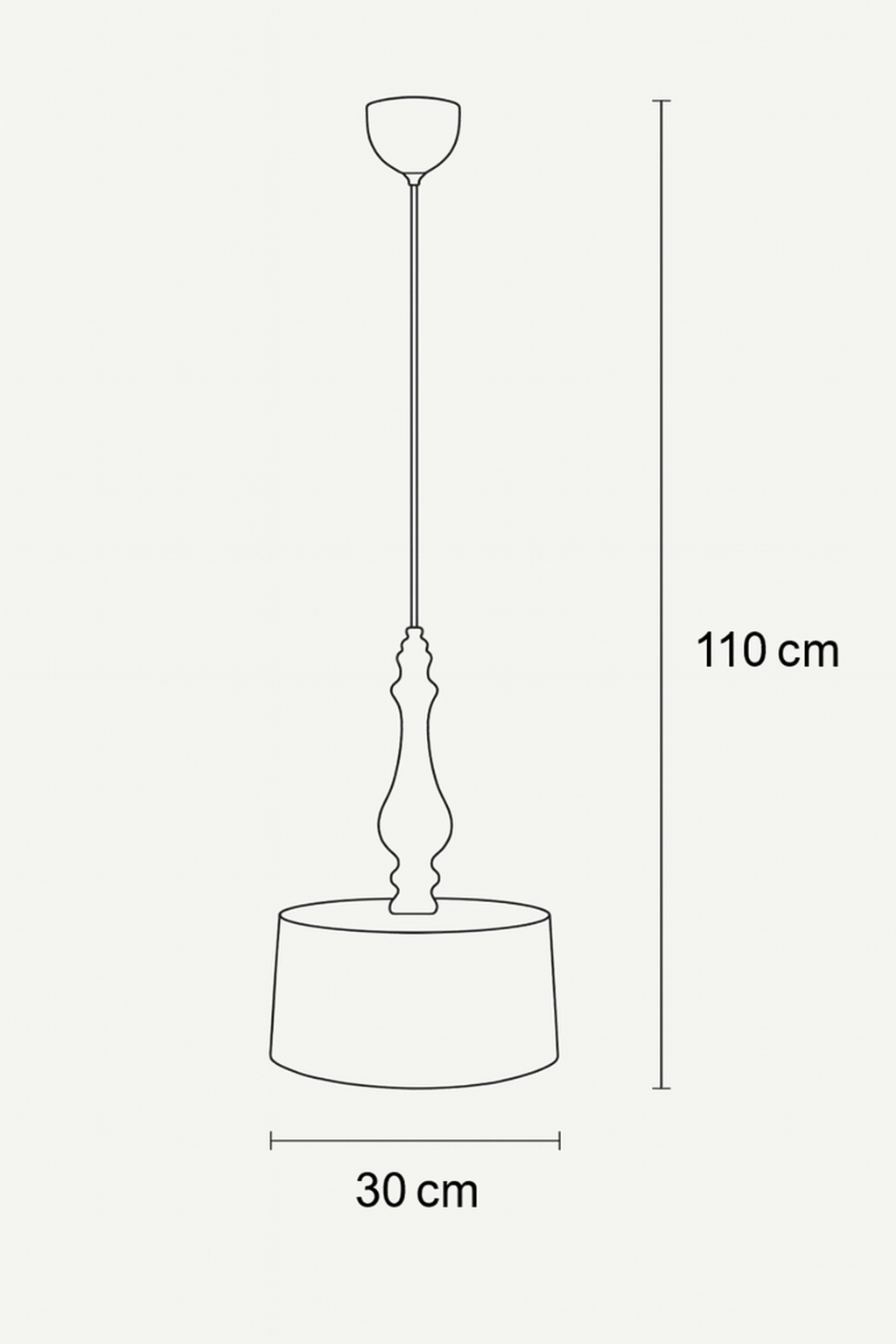 30 cm çapındaki silindirik başlığı, ışığı yumuşakça dağıtarak mekâna sıcak bir atmosfer kazandırır. 110 cm’lik askı yüksekliğiyle hem tekli kullanımda hem de grup halinde asıldığında dengeli bir ritim oluşturur.