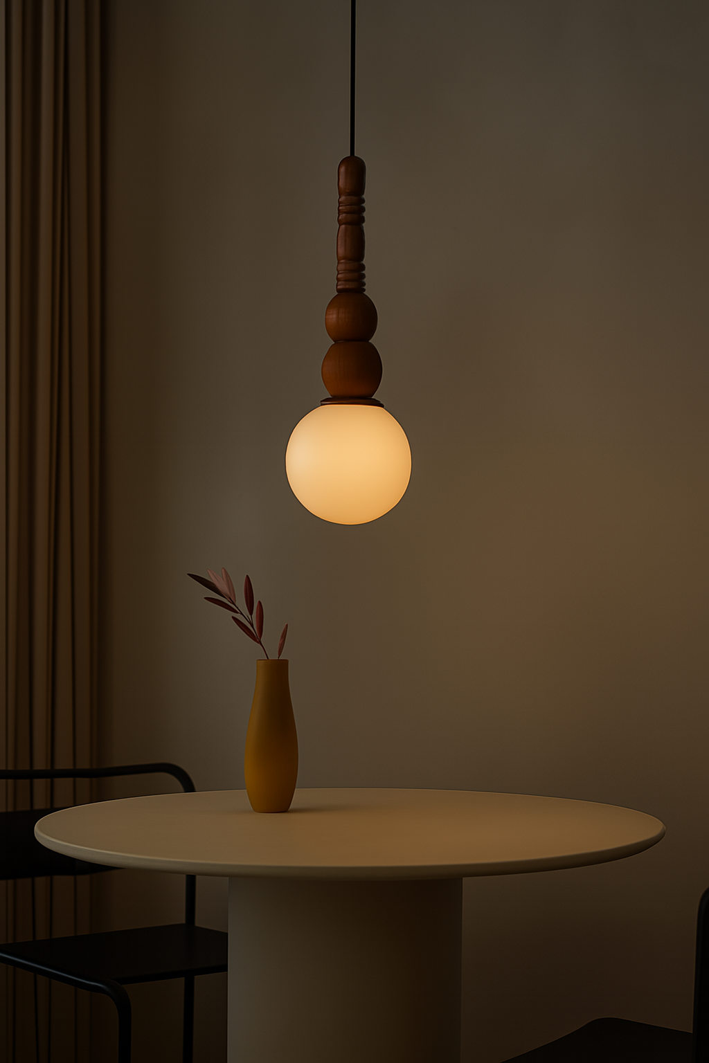 Numa, doğadan ilham alan tasarımıyla sade ama etkileyici bir varlık sunar. Ahşap detaylar sıcaklık katarken, mat cam küre yumuşak bir ışıkla çevresini aydınlatır. Her parça, doğanın ritmiyle uyum içinde: ne fazla ne eksik.