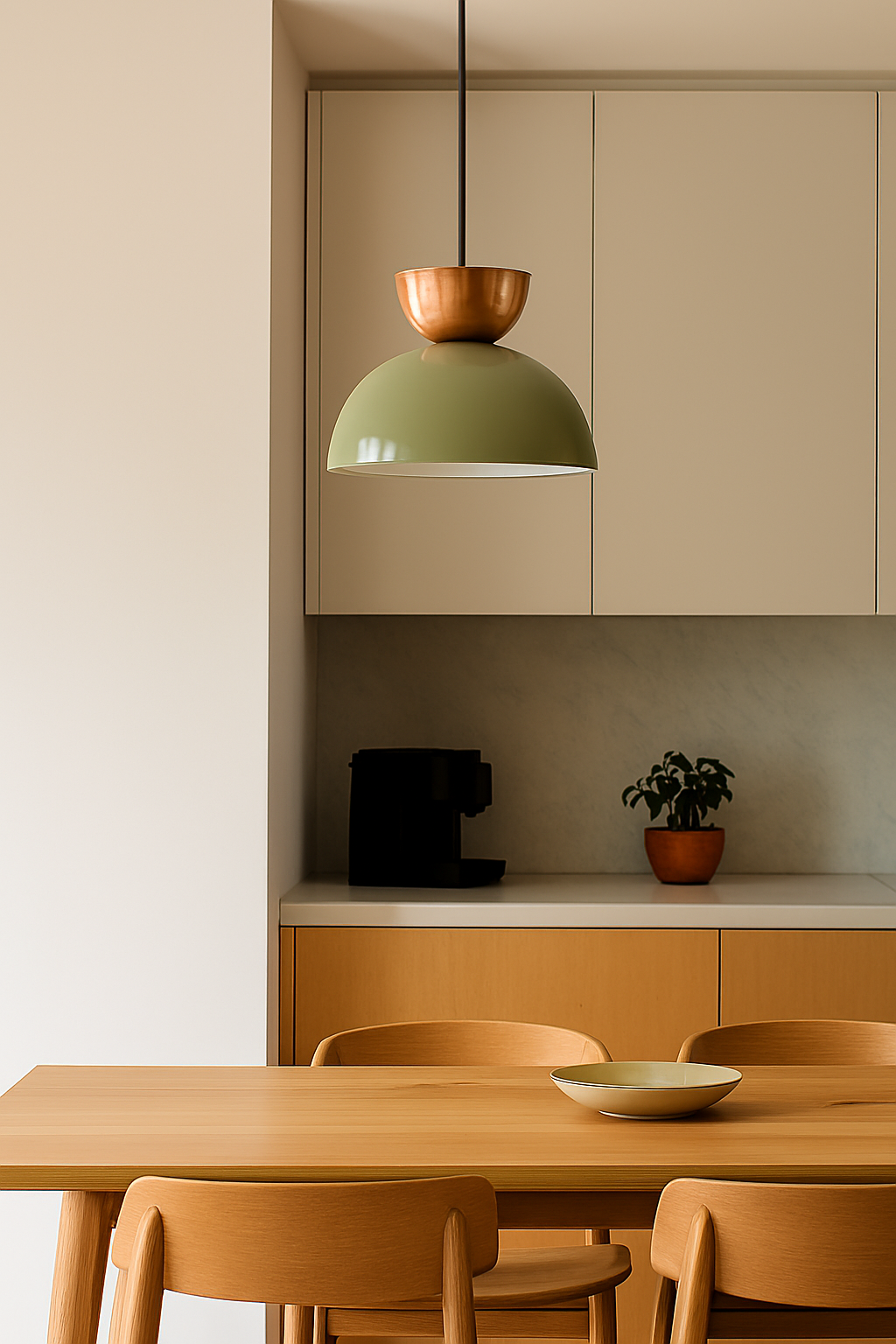 Bakırın sıcak dokusu ile yeşilin doğal dinginliğini buluşturan Vela, sade ama etkileyici bir duruş sergiliyor.